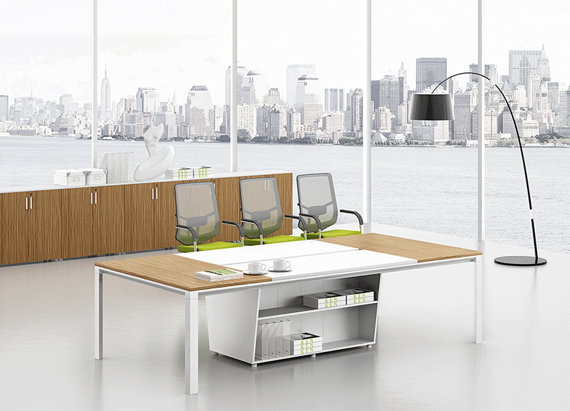 | 1、钢制脚架,实用高端大气; | 2、整齐划一、人性方便的桌面铝合金过线系统。 |