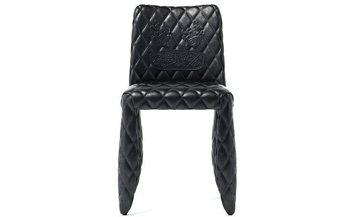 "A soft, puffy and stylish chair with an optional monster face embroidered on the backrest.The monster is a symbol of the eternal battle between opposite forces that take place in life and can be easily recognized inside ourselves,if we have the courage to open our eyes.Scary? Not at all! You forget about the monster once you sit down and enjoy the chair's comfort and softness.Marcel Wanders grew up in Boxtel, the Netherlands and graduated cum laude from the School of the Arts Arnhem in 1988.His fame started with the iconic Knotted Chair in 1996.He is now designing for the biggest European contemporary design manufacturers including Moooi of which he is also art director and co-owner.He works on architectural,interior design and consumer home appliances.His designs have been selected for the most important design collections and exhibitions around the world.Monster chair is offered with a synthetic leather upholstery in black.The chairs can be ordered with or without monster face and with or without armrests.The monster embroidery is identical in both versions."