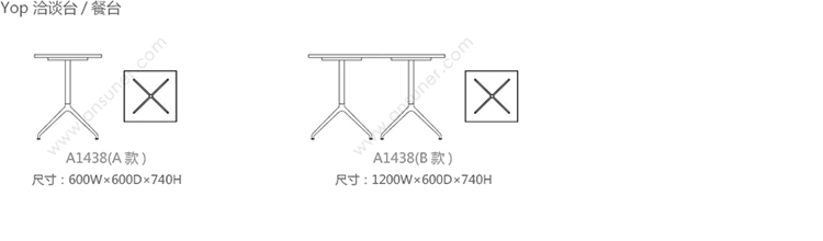 Yop 洽谈台/餐台 系列尺寸/示意图
