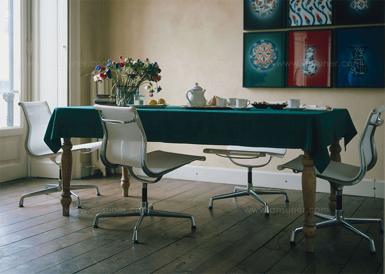 Charles和Ray Eames的铝椅EA 101,EA 103和EA 104非常适合与桌子组合使用:与铝组的其他型号相比,它们更轻,更高,更窄。 由于室内装潢具有多种柔和鲜艳的色彩,因此很容易找到适合任何餐厅的完美椅子。 这三种型号的不同之处在于基座的类型 - 固定或旋转 - 以及是否存在臂。