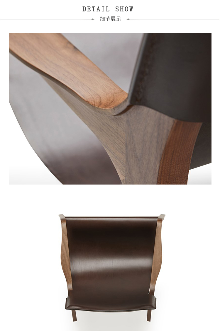 手工缝制的天然皮革扶手椅,坚固的美国胡桃木扶手,非常适合生活或休息区的装备,它是一个可拆卸的部分,不支持紧固件。