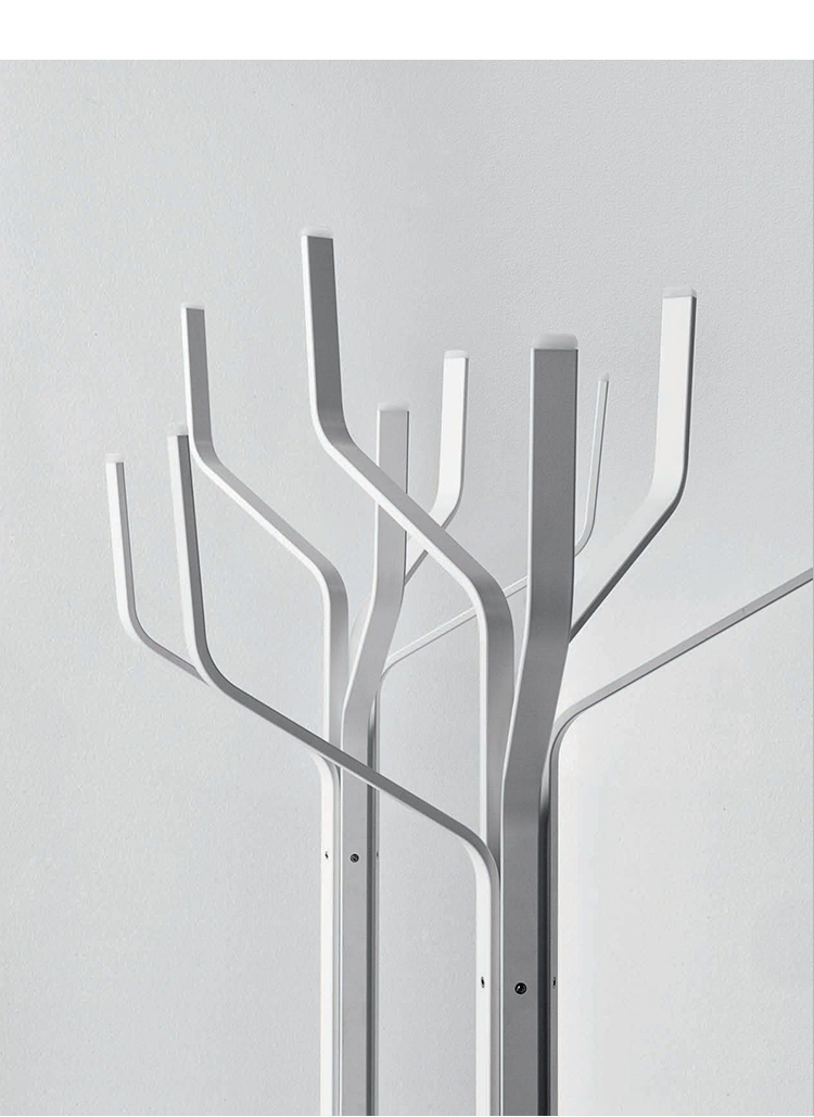 大自然小心翼翼地走进来,令人回想起它的形状之美。艾伯科大衣展台将其分支延伸到不同的高度,在任何环境中都增加了一种可识别的、明确无误的新触觉:办公室、家、休息室或餐厅。