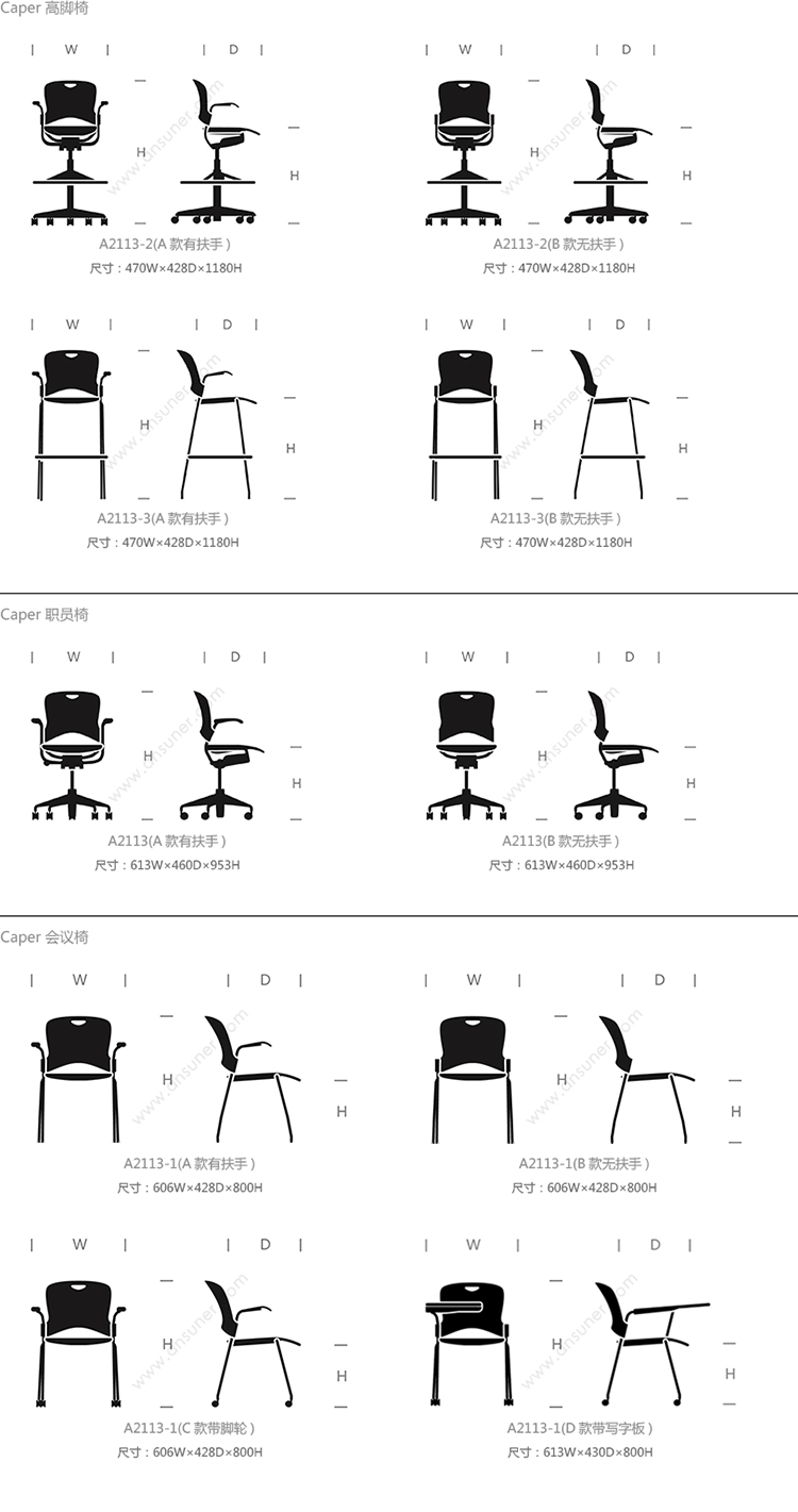 Caper 高脚椅 系列尺寸/示意图
