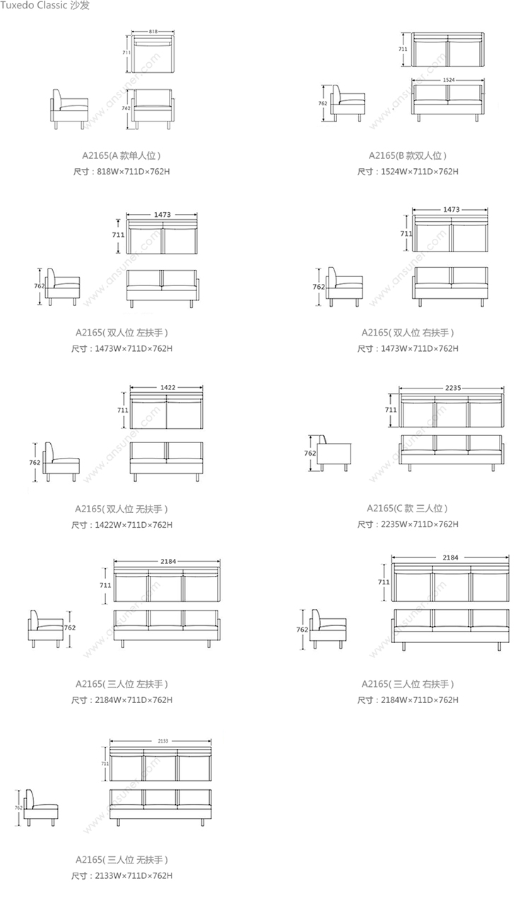 Tuxedo Classic 系列尺寸/示意图