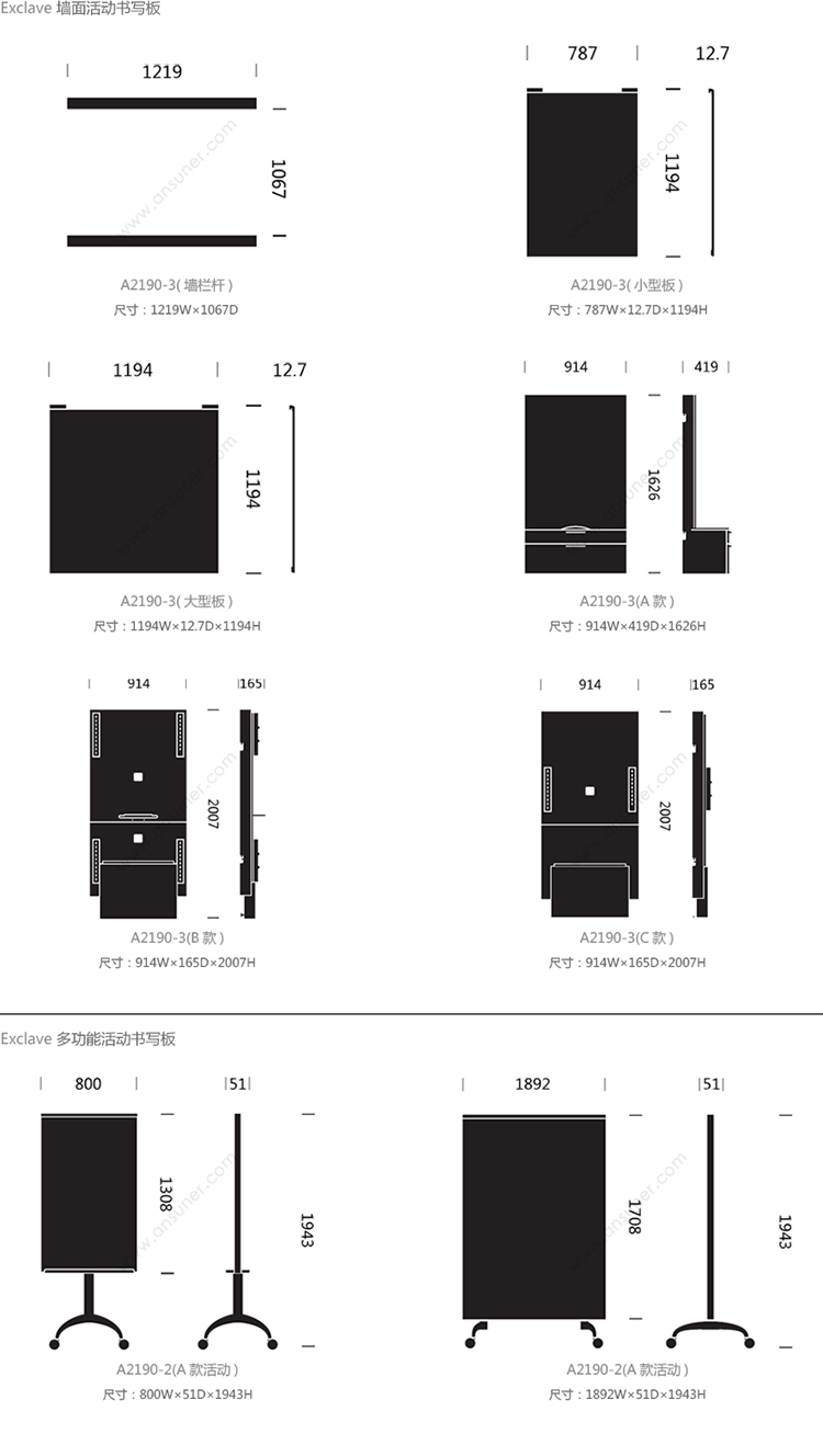 Exclave 系列尺寸/示意图