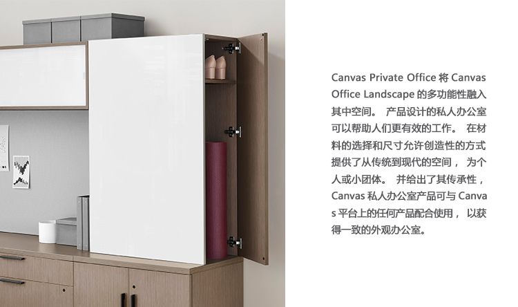 Canvas Private Office将Canvas Office Landscape的多功能性带入封闭空间。 为私人办公室设计的产品可以帮助人们高效地工作。 材料和尺寸的选择允许创造性的方式来提供空间 - 从传统到现代,为个人或小团体。 鉴于其产品线,Canvas Private Office产品可与Canvas平台上的任何产品配合使用,在办公室内保持一致的外观。