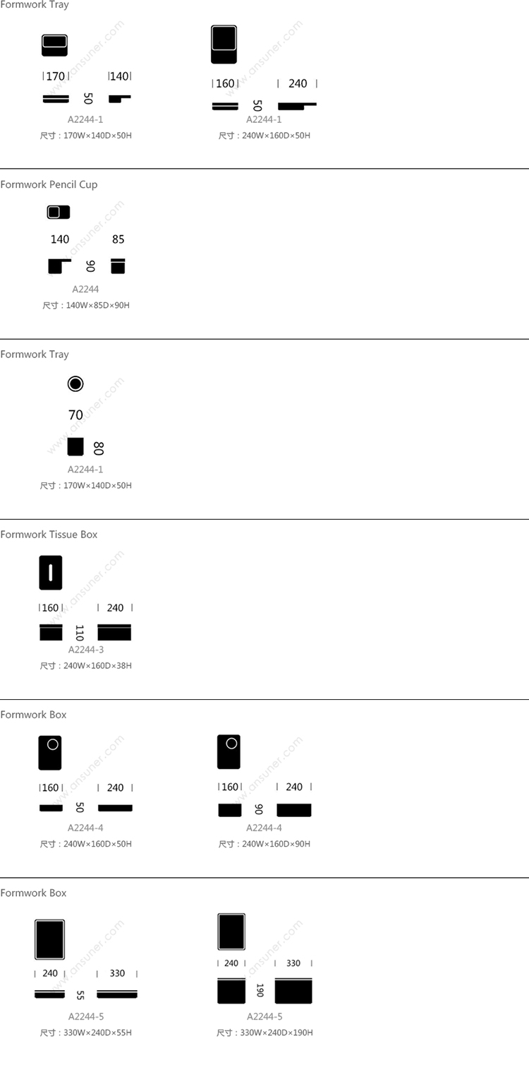 Formwork Tray 系列尺寸/示意图