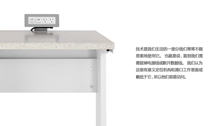 技术是我们生活的一部分,我们经常不加思考地使用它。也就是说,直到我们需要拔掉电源线或断开数据线。我们认为,无论是在工作表面上还是在其下方,定位出口和端口都是有意义的,这样就可以方便地访问它们。