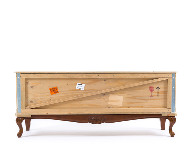 Designed by Marcantonio Raimondi Malerba for Seletti, this modern bedside table blends two different styles in one quirky design. A packing case boasting various labels and signs is paired with ornate Louis XIV legs. The bright green interior features one shelf and two storage spaces. Handmade from solid wood, this Export Como Bedside Table is as impressive in its durability as it is in its distinctive design. It can be used on its own to create a focal point in a bedroom or alongside other pieces of furniture from the Export Como collection. Made in Italy.