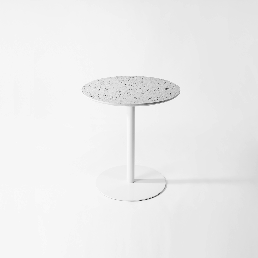 本产品采用了混凝土掺入石英粒的水磨石,随机分布的石英为家具提供了足够的装饰,既简朴又精致。 水磨石板材与支架通过巧妙的结构连结,垂直错开的支架使产品整体更具形式感。 倒角使得整体更具细节,利落的直线,是本土创造追求并相信的简单,和直接的材质表达的手法,没有多余的装饰造型线。