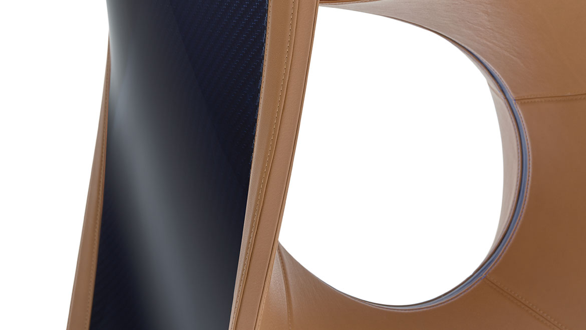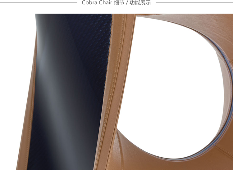 眼镜蛇座椅重现了早期的版本,它是在1902年由Carlo Bugatti设计并完成的。这把椅子是用干邑皮革制成的,有一种蓝色罗亚尔色的碳纤维框架。在蓝色皮革管道和EB字母组合中也有装饰。