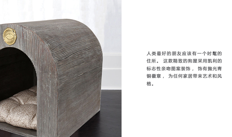 人类最好的朋友应该有一个时髦的住所。 这款精致的狗屋采用凯利的标志性亲吻图案装饰,饰有抛光青铜徽章,为任何家居带来艺术和风格。