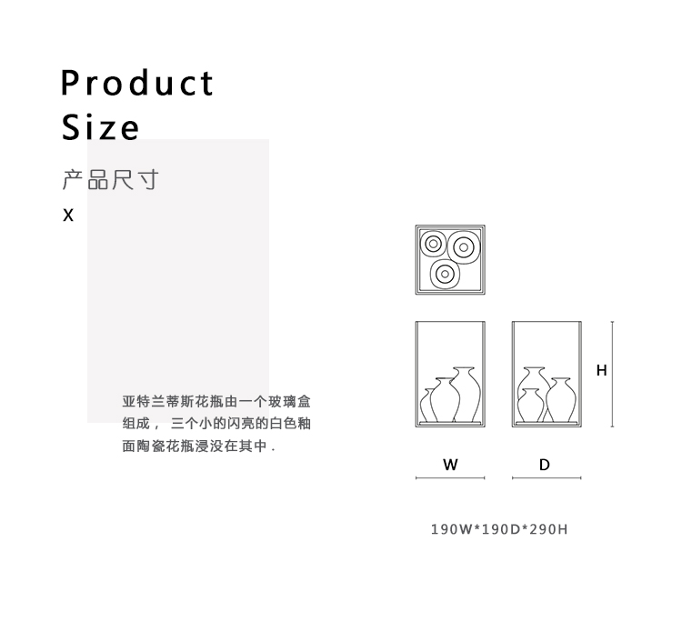 亚特兰蒂斯花瓶由一个玻璃盒组成,三个小的闪亮的白色釉面陶瓷花瓶浸没在其中:通过在花瓶中放置切花,创造了迷人的水生气氛,花朵在表面上诗意地升起。