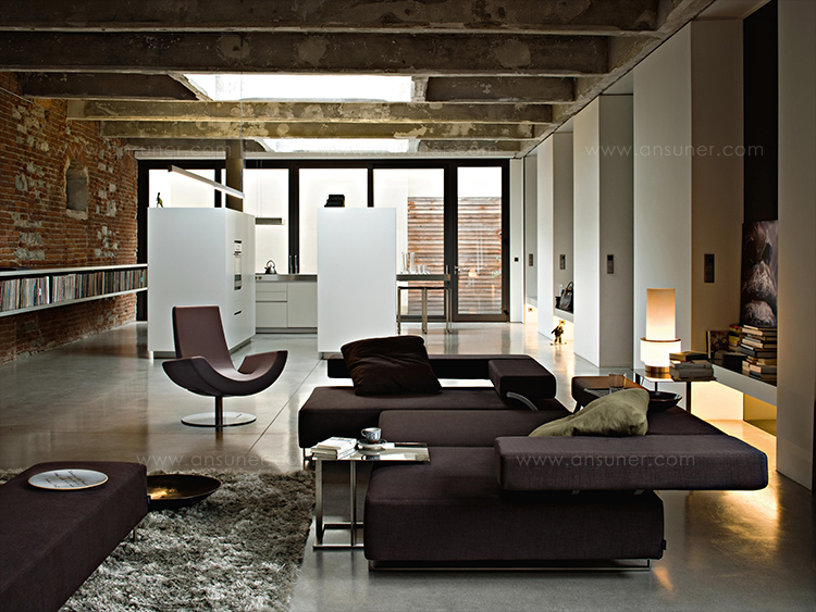 矩形形状的不锈钢咖啡桌,作为阁楼沙发的补充服务元素,它们可以自由地和沙发或扶手椅进行组合。