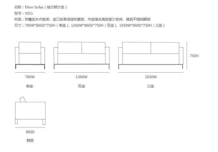 Elton系列沙发由德国柏林设计师Jan Kleihues所设计,系列包括单座沙发、双座沙发及三座沙发。Elton系列沙发均衡的比例和立体感让人想起了优美的装饰艺术。乍一看,它是的向下逐渐变细的两侧是最为引人注目的一点。座位的立方体的、蓬松的靠垫适合介于两者之间。沙发整体安置在一个狭窄的木头底座上。坐在如此蓬松的沙发上是非常舒服的,可让一天的疲劳都得以消除。