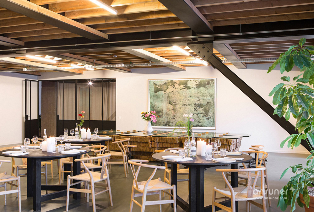 设计团队为这个空间定制设计了一些元素,比如由回收砖块和玻璃纤维制作的吧台。其它的如丹麦摩登傢俬、当代艺术作品和工艺品的完美混搭。漂亮的沙发来自比利时的家具品牌Journuit。