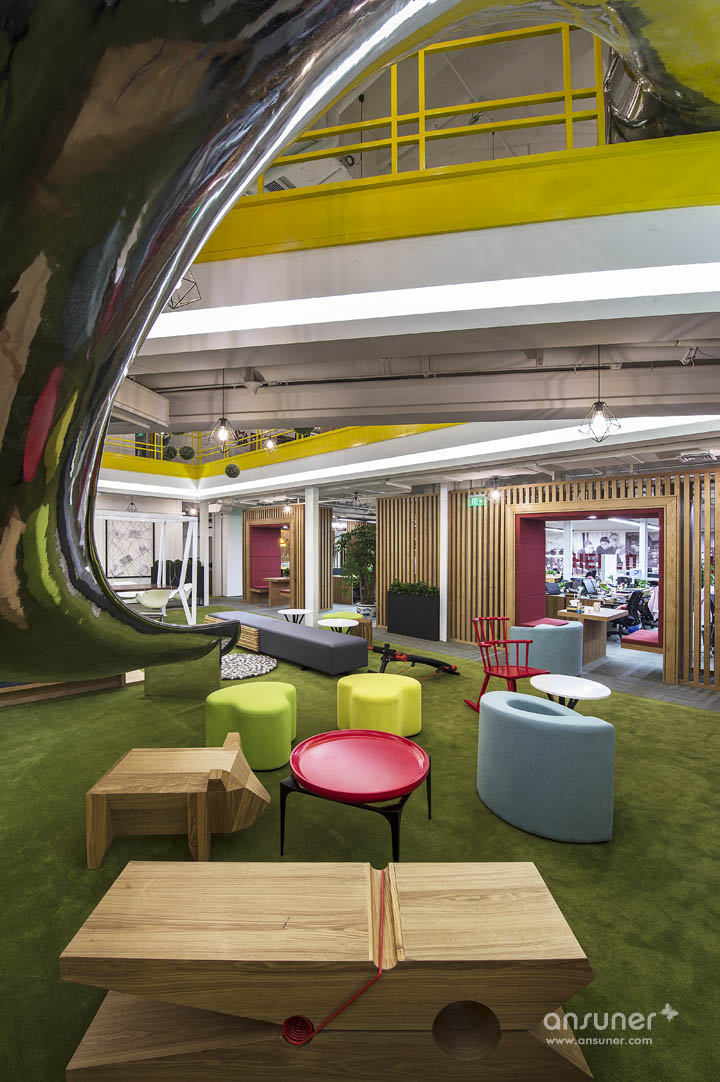 考虑创业者的特殊性,在功能及心灵上的需求有所不同,我们需做出真正切合客群需求的产品而不是简单的生搬硬套,例如我们的创业树、根据客户使用需求而研发的办公桌、数学上“∞”的头脑风暴区,代表着无限的机遇,寓意着入驻企业在此的无限商机和无限发展、阅读区的蜂窝墙、类似小房子的可移动的单人卡位区等等,还植入了滑滑梯、秋千椅、书吧、咖啡吧、按摩室、娱乐区等休闲功能大量融入办公空间当中,休闲和工作的界限不再是泾渭分明,而是相互融合彼此包容,打破以往中规中矩的束缚,以一种更具跳跃性的形式呈现。